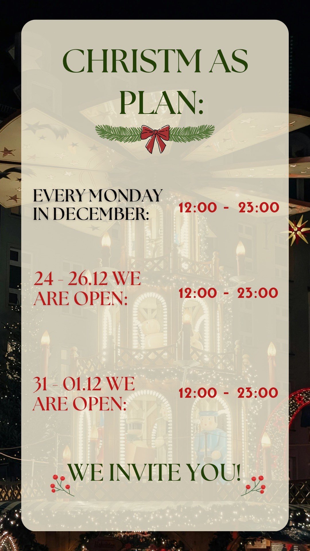 12:00 - 23:00